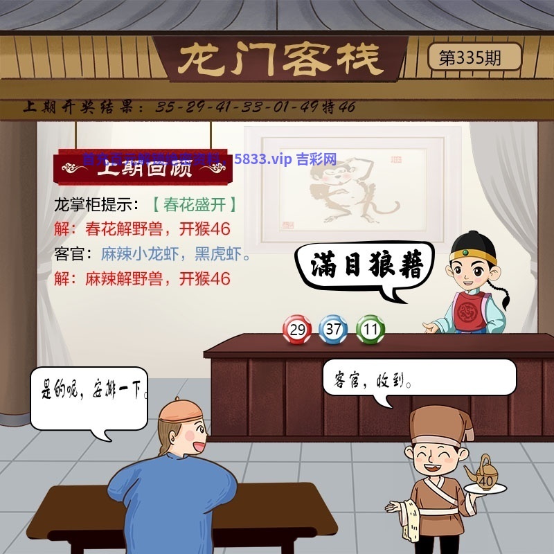 第335期掌柜:滿目狼藉 解:意为?眼前所见景象杂乱不堪、散乱无序。 小二:客官,收到。 解:无。 客官:是的呢,安排一下。 解:滿目狼藉解丑肖的生肖鼠、牛、虎、猴、狗、猪。 推荐九肖:牛猪兔狗虎龙蛇羊马 推荐六肖:牛猪兔狗虎龙 |
